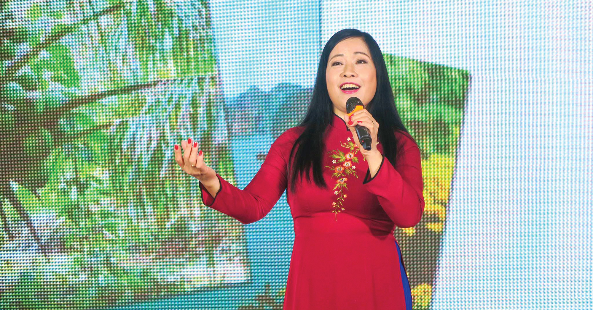 Chị Thúy hát trên sân khấu trong sự kiện của cộng đồng ở Odessa, Ukraine cùng kiều bào Việt Nam ở Ukraine