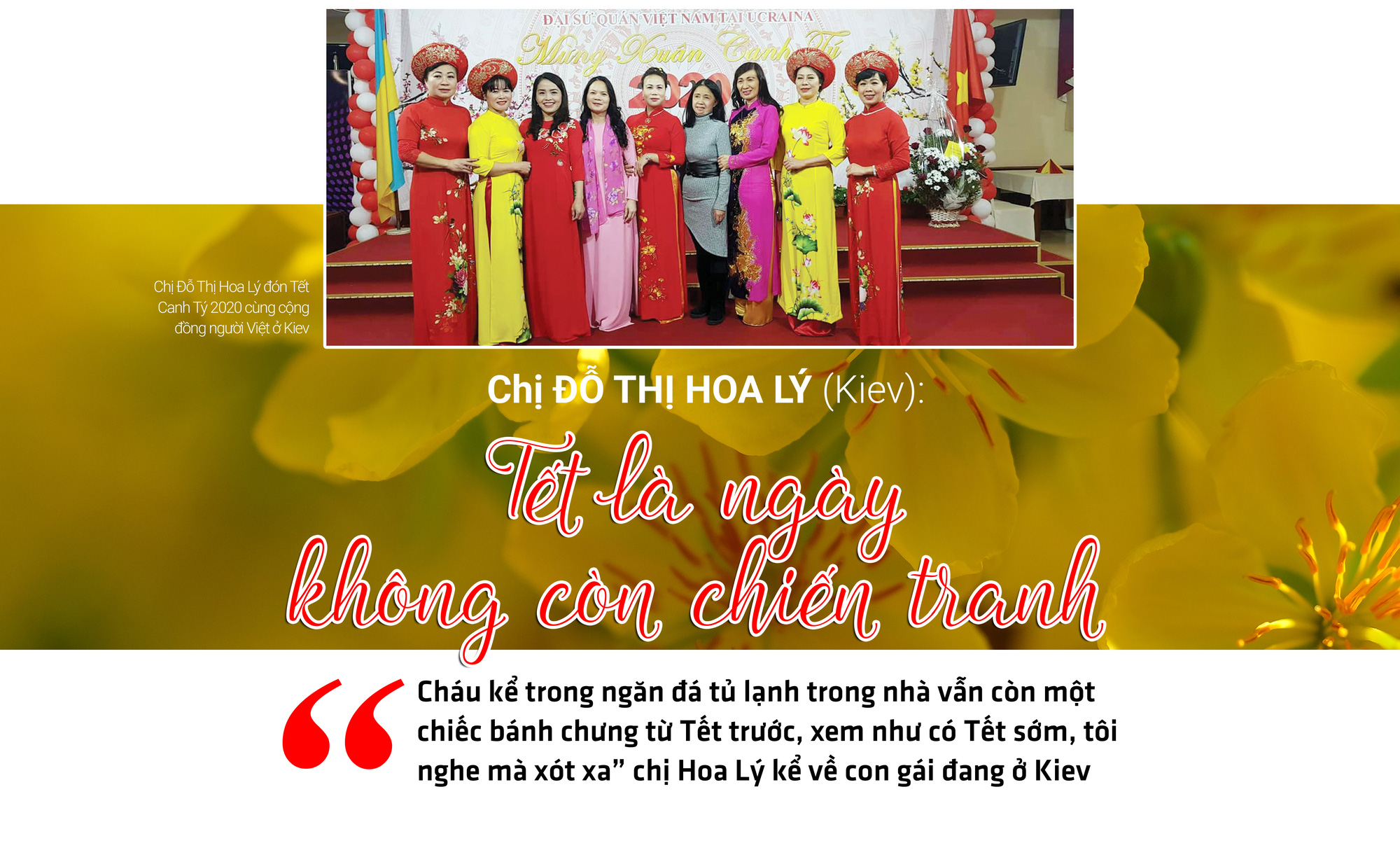 Chia sẻ với Tuổi Trẻ xuân, 4 người Việt tuy hoàn cảnh khác nhau đều cho biết họ nhớ da diết Tết cộng đồng của người Việt ở Ukraine, mong ngày đoàn tụ gia đình và ước nguyện chiến tranh trên quê hương Ukraine sớm kết thúc.
