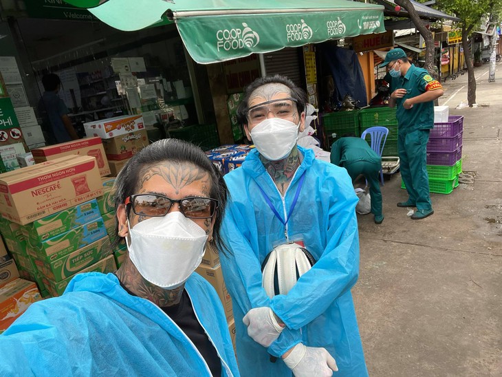 Trong bộ đồ bảo hộ, những hình xăm vẫn xuất hiện lấp ló, thu hút sự chú ý của mọi người.Được biết, "trưởng nhóm" là anh Nghiêm Hà Võ Trường Vinh (SN 1982), hiện đang sinh sống tại Phường 3 (Quận Bình Thạnh). 3 đồng đội còn lại của anh Vinh là những người học trò tại tiệm xăm của mình, gồm: Nhật (SN 1999, quê Kiên Giang), Phước (SN 1999, quê Đắk Lắk) và Đang (SN 1994, quê Cà Mau).