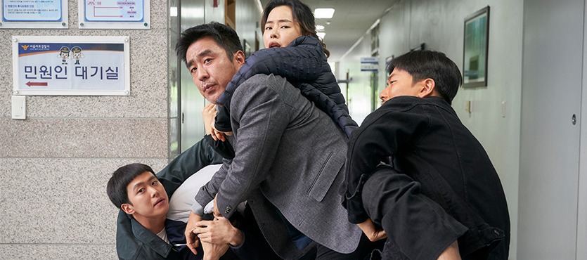 Song song đó, Lối thoát trên không còn có những tình huống cười ra nước mắt của cặp đôi chính. Với sự khôn khéo của đạo diễn Lee Sang-geun, Lối thoát trên không có lẽ là bộ phim có đầy đủ combo hành động - hài hước - thảm họa nhất từ trước đó giờ.