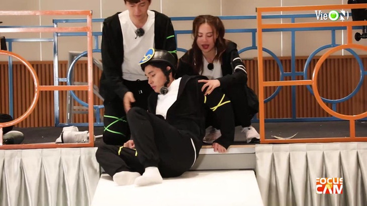 Tuy tuyên bố thẳng thừng mình sẽ không là “gánh nặng” đối với các thành viên còn lại, nhưng trong suốt tập một, Trường Giang lại chứng minh…điều ngược lại. Anh không chỉ thành “hố đen” khi trượt chân khiến cả đội phải thực hiện thử thách lại từ đầu, mà còn tự đưa mình vào “thế bí” khi đối mặt với cả Jun Phạm, Ngô Kiến Huy và Thúy Ngân trong thử thách xé bảng tên để rồi thua đau đớn.