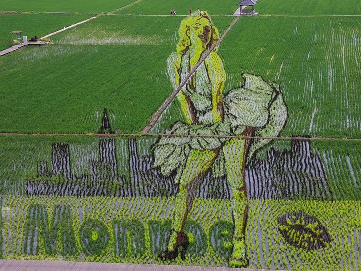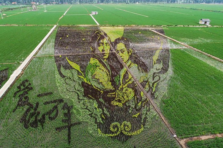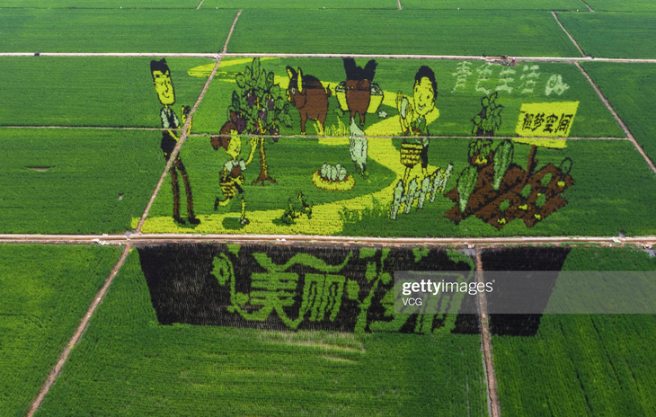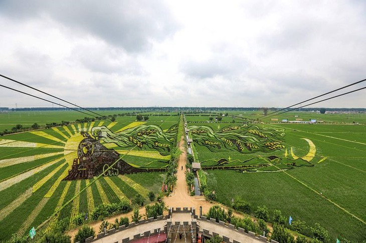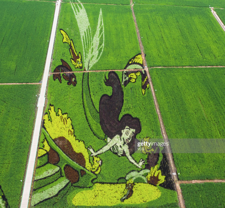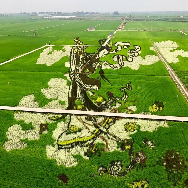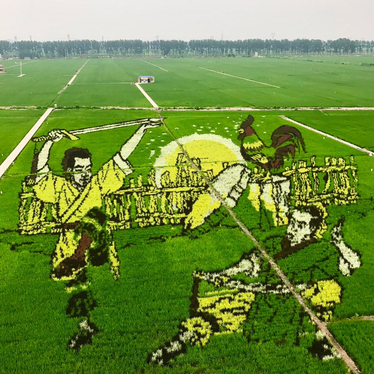 Nông dân ở Thẩm Dương, Trung Quốc đã quy hoạch một khu ruộng rộng hơn 12 hecta để tạo nên những tác phẩm khổng lồ, có thể nhìn thấy từ không trung.