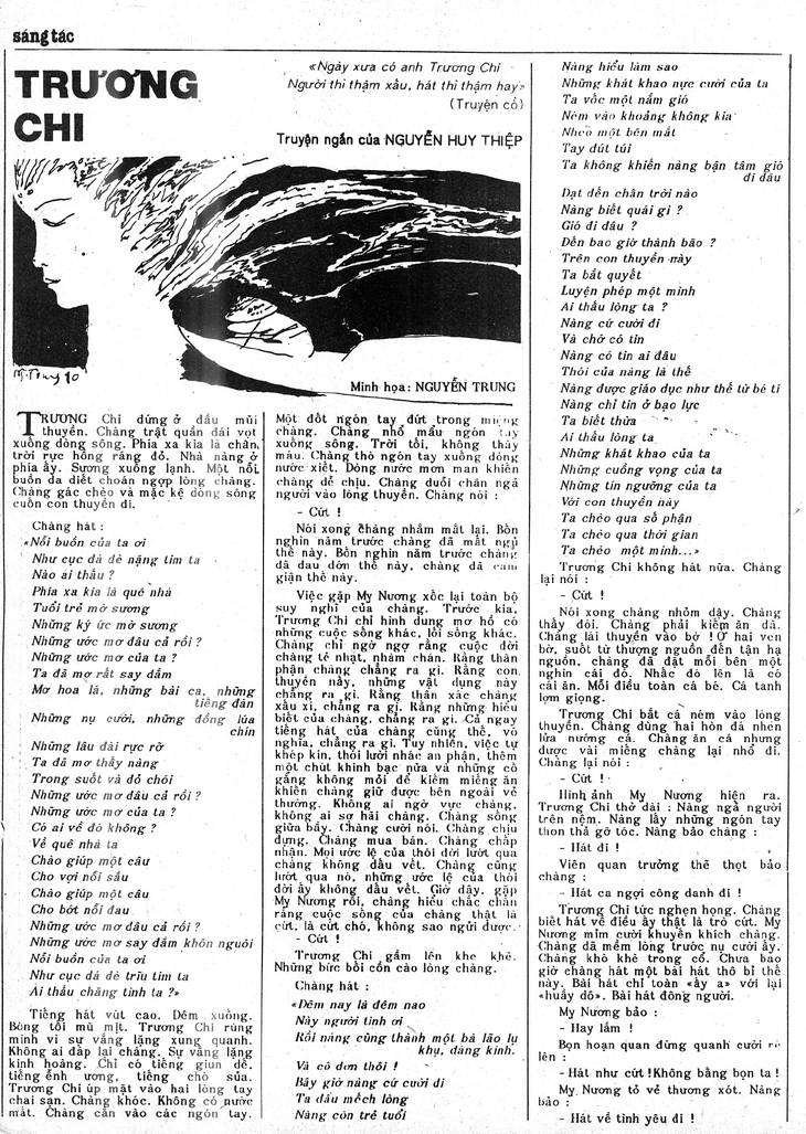 TTCT - Năm 1987, báo Tuổi Trẻ Chủ Nhật (nay là Tuổi Trẻ Cuối Tuần) là tờ báo đầu tiên ở phía Nam giới thiệu nhiều truyện ngắn mới của Nguyễn Huy Thiệp. Nhà văn Nguyễn Huy Thiệp tại nhà riêng ở làng Cò (Ảnh tư liệu của nhà báo Nguyễn Trọng Chức) Sau khi truyện ngắn Tướng về hưu của Nguyễn Huy Thiệp được in trên tuần báo Văn Nghệ (Hội Nhà văn VN) số ra ngày 20-6-1987, biết được nhu cầu của nhiều bạn đọc phía Nam chưa được đọc tác phẩm đang gây chấn động ấy, tòa soạn Tuổi Trẻ Chủ Nhật (nay là Tuổi Trẻ Cuối Tuần) đã nhanh chóng in lại Tướng về hưu trong số báo 42 ra ngày 25-10-1987 (phần 1) và số 43 ra ngày 1-11-1987 (phần 2). Truyện ngắn Tướng về hưu đăng trên Tuổi Trẻ Chủ Nhật năm 1987 (Ảnh tư liệu) Sau đó, Tuổi Trẻ Chủ Nhật (TTCN) là tờ báo đầu tiên ở phía Nam giới thiệu nhiều truyện ngắn mới của Nguyễn Huy Thiệp.Giữa tháng 8-1987, được sự đồng ý của Ban biên tập báo Tuổi Trẻ, tôi bay ra Hà Nội chỉ để được gặp ông Thiệp, mời ông cộng tác với báo. Tôi liên hệ với giáo sư Hoàng Ngọc Hiến nhờ ông giúp dàn xếp một cuộc gặp, do tôi đã đọc lời tựa tập truyện ngắn Tướng về hưu (NXB Trẻ, 1987) của giáo sư và đã có duyên may quen thân ông từ trước. Điểm hẹn là Thư viện Quốc gia trên phố Tràng Thi. Đúng giờ, ông Thiệp đạp chiếc xe cà tàng đến, hai bàn tay đen nhẻm vì xe luôn tuột xích (sên), phải dừng lắp lại. Tôi không bao giờ quên hình ảnh người đàn ông đang gây chấn động làng văn lúc đó: ông mặc chiếc áo bộ đội cũ, quần vải đen một bên xắn đến bắp chân để không bị vướng vào sên xe, chân đi dép lốp, đội nón tre rộng vành, trông đặc sệt nông dân lam lũ.Chúng tôi uống nước chè ở một hàng nước trên phố, chuyện trò khá lâu về việc báo mong muốn được đăng truyện ngắn của ông. Sau một cuộc hẹn nữa tại nhà Nguyễn Huy Thiệp ở làng Cò, trở về Sài Gòn, tôi mang theo bản thảo hai truyện ngắn Chảy đi sông ơi và Trương Chi (sau lần lượt đăng trên TTCN các số 46 ngày 22-11-1987 và số 02 ngày 11-1-1990)... Truyện ngắn Chảy đi sông ơi đăng trên TTCT năm 1987. Không lâu sau, ông Thiệp gửi tiếp vào các truyện Những bài hát và Những người thợ xẻ, chúng tôi đăng trên các số TTCN số 24 ngày 18-6-1989 và số 10 ngày 12-3-1989... Nhận được nhuận bút hay gửi bài mới, ông Thiệp luôn viết thư rất cẩn thận. Thư từ và bản thảo tác phẩm của ông tôi lưu giữ gần như đầy đủ.Thư từ và bản thảo của nhà văn Nguyễn Huy Thiệp gửi báo Tuổi Trẻ (ảnh tư liệu của nhà báo Nguyễn Trọng Chức) Truyện ngắn Trương Chi của -Nguyễn Huy Thiệp đăng trên TTCN năm 1990. Có lần tôi nhận được một xấp bản thảo đánh máy, dày đến 80 trang, kịch bản phim Tướng về hưu do chính ông viết (ông từng công khai bày tỏ không đồng tình với cách bộ phim đã thực hiện và công chiếu, cả kịch bản lẫn dàn dựng). Tiếc là không thể in được, không chỉ với kịch bản Tướng về hưu mà còn với nhiều truyện ngắn, bài viết khác của ông (có thể kể các tiểu luận Khoảng trống ai lấp được trong tư tưởng nhà văn?, Văn học là cuộc sống, kịch nói Nhà tiên tri...) vào một giai đoạn nghiệt ngã mà ngay cả tên ông cũng phải... gạch bỏ trong một cái tin vắn văn hóa văn nghệ trên báo. Truyện ngắn Những người thợ xẻ -đăng trên TTCN năm 1989. Dẫu sao thì “Của Caesar, trả về Caesar; của Thiên Chúa, trả về Thiên Chúa” (Phúc Âm), tài năng và bản lĩnh của một nhà văn lớn mãi mãi sống trong lòng người đọc. Điều đó được thấy rất rõ trong những ngày qua sau khi Nguyễn Huy Thiệp ra đi mãi mãi, thể hiện trong các bài viết ca ngợi và tôn vinh ông tràn ngập trên báo chí và mạng xã hội. Với TTCN và với cá nhân tôi, thật vinh dự khi được ông tin cậy gửi gắm nhiều điều. ■Truyện ngắn Những bài hát đăng trên TTCN năm 1989. Tags: Nguyễn Huy ThiệpTướng về hưuChảy đi sông ơiNhững người thợ xẻTrương ChiTruyện ngắn Những bài hátTuổi Trẻ Chủ Nhật