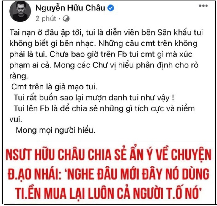 NSƯT Hữu Châu bị hack Facebook để 'đá xéo' Sơn Tùng M-TP?