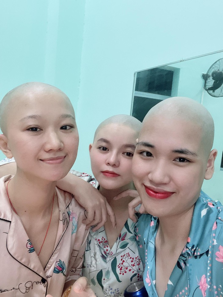 Cạo tóc giúp các cô gái tình nguyện viên dễ mặc đồ bảo hộ hơn, tránh lây nhiễm chéo và đỡ mất thời gian chăm sóc tóc. (Ảnh NVCC)Điều đặc biệt, bốn trong 6 cô gái đã "xuống tóc" để thuận tiện hơn cho các công tác chống dịch, tránh vướng víu và giảm nguy cơ lây nhiễm chéo. Theo đó, Bích Phương, Đài Trang, Ngọc Lan và Thùy Trang đã quyết định cạo đi mái tóc của mình, vốn dĩ được chăm sóc rất cẩn thận, kỹ lưỡng.