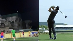 Nữ golf thủ có cú đánh bóng bay xuống lòng hồ khiến nhiều người xem không nhịn được cười.