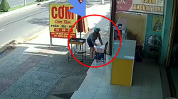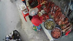 Nhân lúc chủ sạp đi vào trong, người phụ nữ nhanh tay lấy trộm một con gà bỏ vào túi rồi phóng xe máy đi.