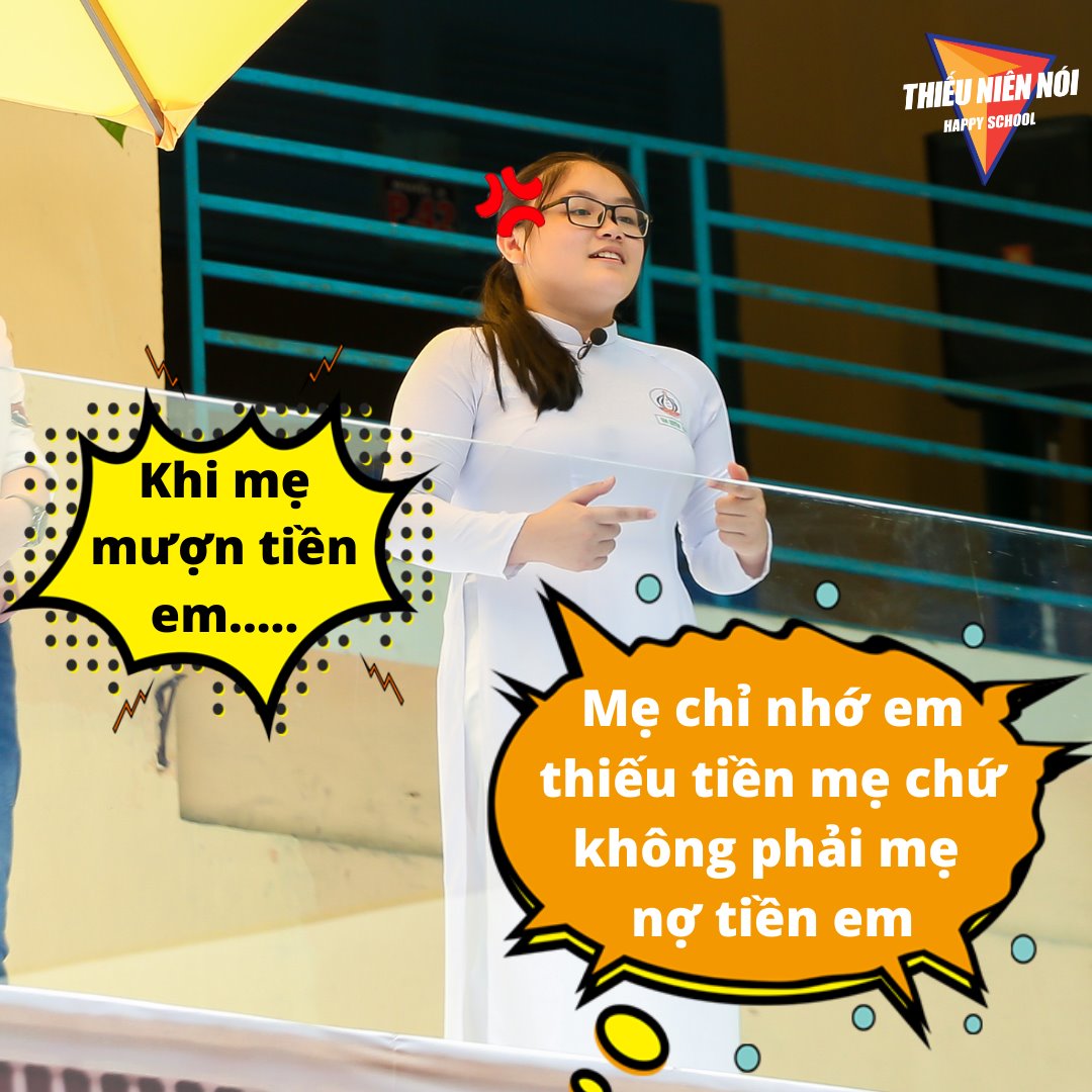 Vòng Gia Quyên "dũng mãnh" kể xấu mẹ trên sóng truyền hình. (Ảnh Thiếu Niên Nói)Vòng Gia Quyên là nữ sinh lớp 10A13, trường THPT Trần Khai Nguyên (TP HCM). Mới đây, cô bạn đã góp mặt trong chương trình Thiếu Niên Nói cùng với mẹ và anh trai, để "ôn" lại hàng loạt kỷ niệm dở khóc dở cười ngay dưới sân của ngôi trường mình đang học.