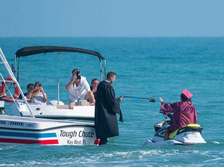Hay như các học sinh của trường Somerset Island Prep (thành phố Key West, bang Florida, Mỹ) đã được cưỡi mô tô nước để nhận bằng tốt nghiệp, nhằm đảm bảo an toàn cho tất cả các thành viên trong trận đại dịch Covid-19 vào năm 2020.