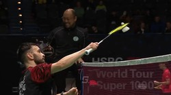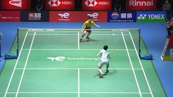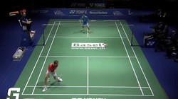 Nữ tay vợt đánh cầu lông tỏ vẻ rất nhàn hạ nhưng khiến đối thủ chạy sấp ngửa để đỡ cầu.