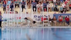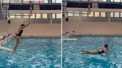 Ở lượt thi thứ 5 chung kết nhảy cầu cứng nữ SEA Games 32 trưa 10-5, nữ VĐV Singapore Ong Rei En có pha tiếp nước bằng bụng được trọng tài cho gần như điểm liệt.