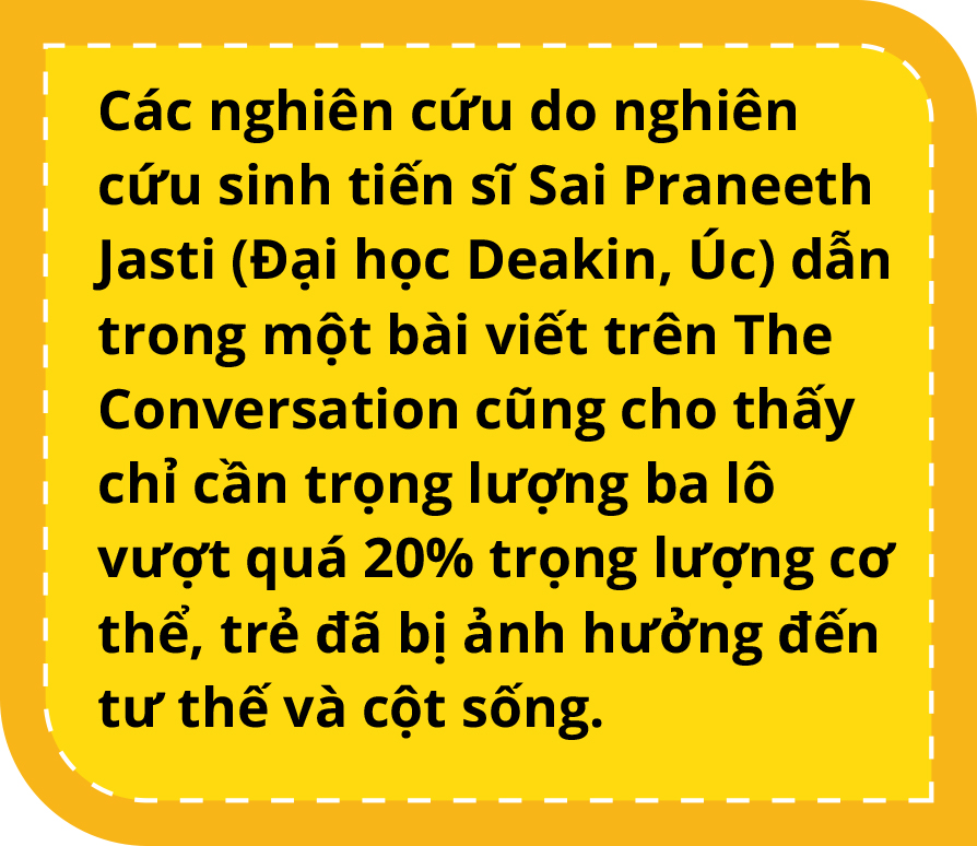 Từ một vật dụng được thiết kế to và chắc chắn để lớn lên cùng trẻ lúc ban đầu, nay chính sự bền vững ấy lại khiến lưng trẻ gánh chịu bao áp lực. Đây cũng là vấn đề bác sĩ nhi khoa Gabriella Dauer đến từ Florida (Mỹ) lo ngại ngay khi năm học mới 2025-2026 chỉ vừa mới bắt đầu.