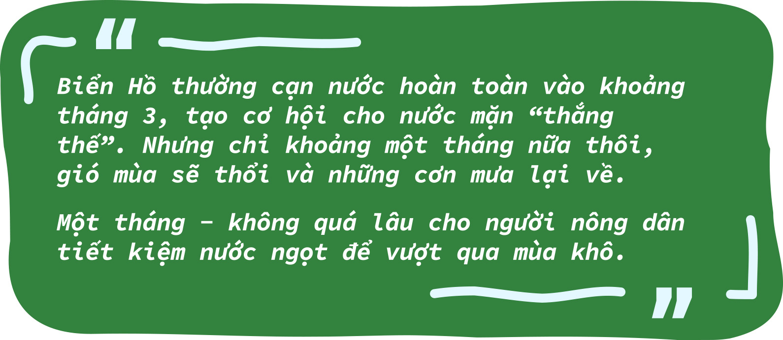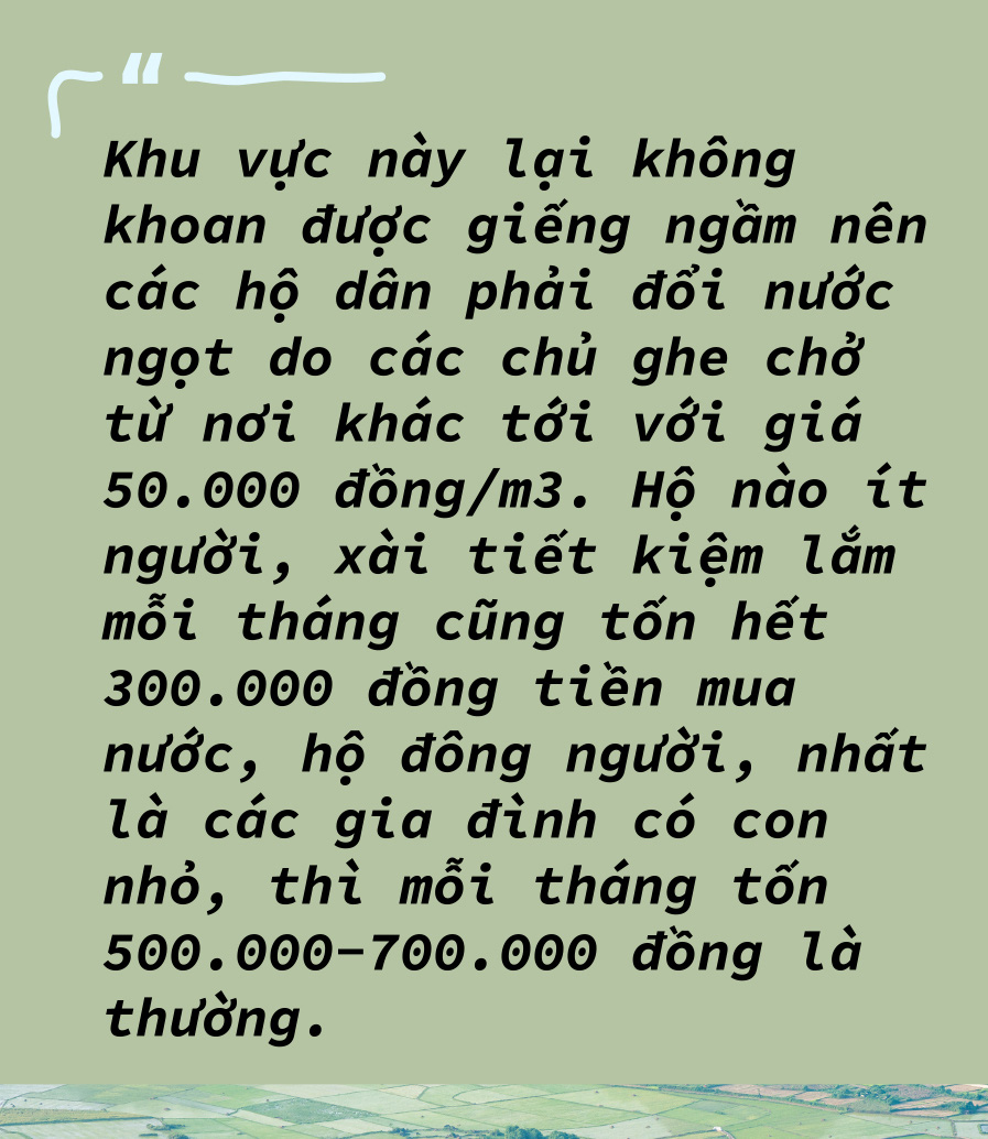 Cuộc sống của người dân mùa hạn mặn đảo lộn, tối ngày họ quanh quẩn chuyện đổi nước, tiết kiệm nước và không có tiền.