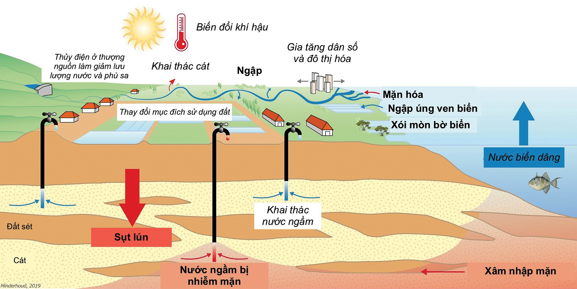 Hình 2: Philip S.J. Minderhoud, “Sụt lún đồng bằng: Hiện trạng lún và dự báo tương lai ở vùng Đồng bằng sông Cửu Long, Việt Nam”, 2019