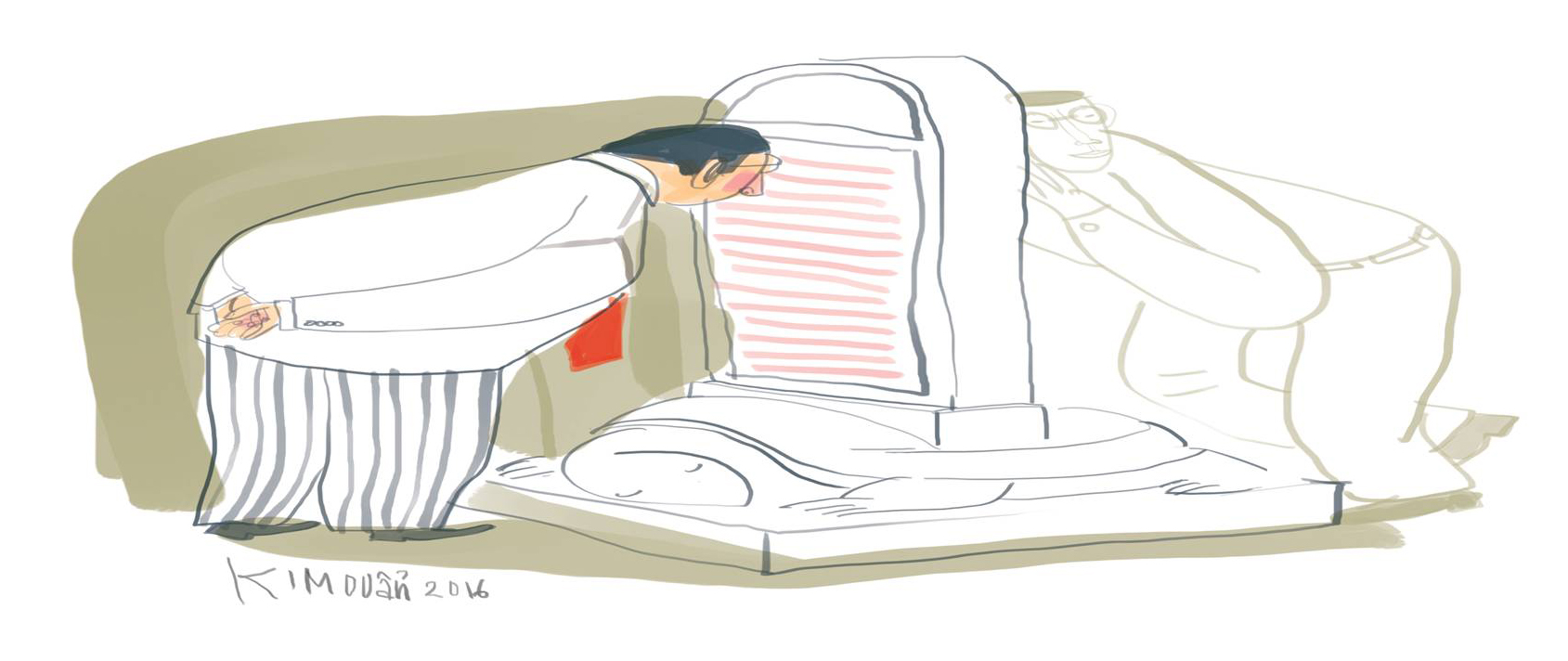 TTCT - Buổi sáng ngày khánh thành bia vinh danh tiến sĩ, lạ thay, cụ rùa đá cứ gục mặt xuống, nhìn kỹ còn thấy những dòng nước chảy ri rỉ từ khóe mắt. Minh họa: Kim Duẩn Trong cuộc họp đầu năm, sếp hùng hồn tuyên bố:- Một cơ quan văn hóa hàng đầu tỉnh mà nhìn trước ngó sau đến mòn con mắt chỉ lác đác vài vị tiến sĩ. Sao các vị không biết nhục. Hãy bớt thời gian ăn chơi nhảy múa lại, hãy ngừng ngay các thói quen trà lá hút xách! Hãy tiến quân vào khoa học, kiếm về đây những tấm bằng tiến sĩ! Lúc bấy giờ, các người dẫu muốn vui chơi phỏng có được không?Vậy là thiên hạ rần rần đăng ký đề tài nghiên cứu, hăm hở vào Nam ra Bắc tầm sư học đạo. Người có chút tiền của dư dả thì xuất dương, săn bằng tiến sĩ ngoại. Nhân viên bảo vệ, vốn là sinh viên trường sư phạm, cũng hăm hở đăng ký đi học tiến sĩ:- Tôi đăng ký nghiên cứu ngành tình báo, khoa hình sự chống tội phạm quốc tế! Khi cơ quan mình tập trung nhiều chất xám, chắc chắn sẽ lọt vào tầm ngắm của bọn tội phạm liên quốc gia!Sếp gật gù:- Rất có tầm nhìn. Nhưng thành tích đang mỏng, cậu cần phấn đấu thêm vài năm nữa.Cuối năm, đã có người hớn hở mang những tấm bằng tiến sĩ về trình. Bằng đỏ rực, chữ mạ vàng. Các tân khoa sẽ được khắc tên trên một tấm bia đá. Bia sẽ được đặt trang trọng trên lưng cụ rùa, cụ có nhiệm vụ cõng các tiến sĩ đi vào sử xanh.Những người thợ đá được mời về làm việc cả ngày cả đêm.Buổi sáng ngày khánh thành bia vinh danh tiến sĩ, lạ thay, cụ rùa đá cứ gục mặt xuống, nhìn kỹ còn thấy những dòng nước chảy ri rỉ từ khóe mắt. Người ta hớt hải chạy đến tìm nhân viên bảo vệ truy vấn:- Đêm qua có người nhìn thấy cậu xớ rớ bên mấy tấm bia?Nạn nhân thành thật kể:- Trực đến nửa đêm, tôi đến xoa đầu cụ rùa, nói rằng cụ rùa đừng buồn nhé, mấy ông tiến sĩ trên lưng cụ ấy mà, có vị chưa có bằng cử nhân đâu!■ Tags: Tiến sĩCụ rùaXoa đầu cụ rùa