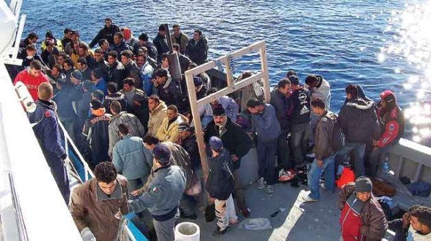 Một chuyến tàu chở người nhập cư Bắc Phi đến đảo Sicily (Ý) - Ảnh: globalimmigrantnews.com