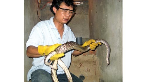 TTCT - Tốt nghiệp khoa sinh Trường ĐH Vinh, anh Ông Vĩnh An (sinh năm 1969) về làm giáo viên Trường THPT thị xã Cửa Lò ngay từ ngày lập trường. Anh bắt đầu nuôi rắn từ năm 2002 khi con trai đầu lòng mới được 4 tuổi, và vừa bảo vệ thành công luận án nghiên cứu rắn ráo trâu trong điều kiện nuôi. Bắt lại rắn khi thử nghiệm thả ra ngoài tự nhiên, rắn đã tìm bắt gà con nhà hàng xóm. Ảnh: V. HiếuChồng dạy sinh học, vợ dạy ngoại ngữ cùng trường, cuộc sống gia đình anh An không lấy gì dư dả vì còn phải nuôi con nhỏ. Anh An cho biết sở dĩ chọn nuôi rắn vì đây là loài bò sát được sử dụng làm thuốc từ trước Công nguyên. Với rắn ráo trâu, các triều đại phong kiến cổ ở phương Bắc đã sử dụng để làm thuốc, có tác dụng bồi bổ và làm ấm cơ thể.Hai năm mày mò ấp trứng rắnNhững đóng góp chính của luận án gồm: phát hiện được sự sai khác về hình thái và thời gian động dục của rắn đực và rắn cái; xác định được mùa giao phối, đẻ trứng và thời gian ấp trứng, ảnh hưởng của nhiệt độ, độ ẩm môi trường; xác định được 13 loại thức ăn của rắn, độ ưa thích, nhu cầu và hiệu suất thức ăn theo mùa, tuổi và tập tính ăn mồi của rắn ráo trâu; xác định được tốc độ tăng trưởng của rắn ở các giai đoạn sinh trưởng và giới tính khác nhau theo các mùa trong năm, đánh giá được ảnh hưởng của lượng thức ăn đến sinh trưởng của rắn; có tư liệu mới về hoạt động mùa và hiện tượng ngủ đông của rắn, một số tập tính hoạt động cơ bản của rắn; phát hiện được 11 loài ký sinh trùng, 6 loại bệnh ở rắn… Tham khảo nhiều hộ nuôi rắn, anh theo dân bắt rắn, tìm nơi rắn ở để thả cảm biến vào hang đo nhiệt độ, độ ẩm nhằm làm chuồng phù hợp. Nhưng phải đến sáu lần đập đi xây lại, anh mới làm được chuồng gần hội đủ yếu tố thuận lợi cho việc nghiên cứu.Anh An cho biết lúc đầu được các thầy (GS.TSKH Đặng Huy Huỳnh và PGS.TS Hoàng Xuân Quang) định hướng nuôi rắn sọc dưa và rắn ráo trâu, nhưng qua nuôi thử thấy rắn sọc dưa chủ yếu ăn chuột còn sống, khó nuôi quy mô lớn nên anh chuyển sang rắn ráo trâu. “Tuy nhiên, những hiểu biết về sinh học, sinh thái của loài này vẫn còn rất hạn chế. Tôi nuôi để nghiên cứu, nếu thành công sẽ góp phần cho việc bảo tồn và cũng có thể phục vụ việc chăn nuôi với đối tượng vốn không phải là vật nuôi này” - anh nói.Mua lại rắn từ những người bắt rắn để nuôi, sau một thời gian những con rắn đầu tiên đã đẻ trứng. Nhưng để trứng nở lại là vấn đề nan giải, tỉ lệ trứng hỏng vẫn nhiều. Để khống chế được độ ẩm, nhiệt độ khi ấp trứng, anh phải xây phòng riêng, lắp máy điều hòa nhiệt độ. Mày mò thử nghiệm nhiều cách, cuối cùng anh cho ra đời một lồng ấp trứng xây bằng gạch, mái bêtông rỗng có lớp cách nhiệt, ốp gạch men trắng, lắp đèn khử trùng và bộ điều hòa nhiệt - ẩm cùng thiết bị cung cấp oxy sạch. Tỉ lệ trứng nở đạt trên 80%. “Hai năm thử hết cách này đến cách khác, nhiều khi cứ thừ người nghĩ ngợi, cuối cùng cũng đạt tỉ lệ ấp nở như mong muốn. Có hôm con trai ngủ dậy reo lên “bố ơi rắn nở cả búi rồi”, thấy lòng vui không thể tả” - anh nhớ lại.Từ thành công của luận văn thạc sĩ nghiên cứu rắn ráo trâu trưởng thành, anh An được chuyển tiếp làm nghiên cứu sinh của Viện Sinh thái và tài nguyên sinh vật, trở thành giảng viên khoa sinh học Trường ĐH Vinh. Công trình nuôi rắn của anh nhờ đó được nhiều người biết hơn. Lồng ấp trứng rắn hình thành sau hai năm thử nghiệm cho tỉ lệ trứng nở trên 80%. Ảnh: T. PhùngMất “hai cái ôtô” để nuôi rắn Có lần một chuyên gia nước ngoài đến xem nhìn thấy hệ thống nghiên cứu (camera thường và hồng ngoại, nhiệt - ẩm kế điện tử, kết nối và tự động hiển thị hình ảnh, nhiệt độ môi trường, nền đất từ nơi rắn sinh sống lên màn hình máy tính) đã thắc mắc về kinh phí công trình này. Anh An đùa: “Trước khi nuôi rắn tôi đã có một cái ôtô xịn, nhưng giờ thì đi xe máy cũ”. Nghe xong, ông này thích thú giơ ngón tay cái lên ý bảo “chuyên nghiệp”. Nhưng vị chuyên gia đó đâu biết để có tiền nuôi rắn, sau giờ dạy ở trường anh An chạy xe máy lên TP Vinh cách nhà 20km dạy luyện thi đại học. Từng đêm mưa to anh lại mang vợt, đội đèn đi soi ếch, nhái làm thức ăn cho rắn. Để có thiết bị nghiên cứu, anh phải nhờ đến lòng tốt của bạn bè, anh em gia đình và cả tiền vay mượn. “Lúc đất giá 40 triệu đồng/100m2, thầy mày đi vay 50 triệu đồng để mua camera về quay rắn” - vợ anh vẫn nhắc vui mỗi khi học trò hỏi “cô cho thầy bao tiền nuôi rắn?”. Ngày anh An bảo vệ thành công luận án tiến sĩ (Nghiên cứu sinh học, sinh thái cá thể của rắn ráo trâu (Ptyas mucosa) trong điều kiện nuôi tại Nghệ An), khi những học trò cũ đến chúc mừng hỏi “tại sao th