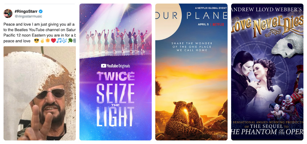Những chương trình giải trí hấp dẫn ở nhà tránh dịch tuần này The Beatles, ban nhạc huyền thoại ‘trở lại’ trên YouTube khi tay trống Ringo Starr tiết lộ sẽ có ‘bất ngờ lớn’ trên kênh YouTube chính thức của mình. Hàng triệu người hâm mộ cùng mong đợi ‘bất ngờ’ vào 23h ngày 25-4 (giờ Việt Nam) để hòa vào niềm vui với những tin tức lạc quan về cuộc chiến chống dịch COVID-19 tại nước nhà.
