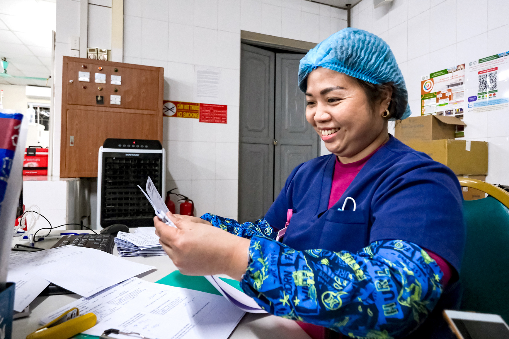 Điều dưỡng Vũ Thị Hảo - Trung tâm Thận tiết niệu - lọc máu, Bệnh viện Bạch Mai - đã có 18 năm gắn bó với những bệnh nhân chạy thận. Khi được hỏi về lịch nghỉ Tết năm nay, chị Hảo cười nói: "Mấy năm đầu đi làm, gia đình cũng hỏi câu đấy. Nhưng bây giờ không hỏi câu đó nữa, bởi ở đây năm nào cũng vậy, chỉ được nghỉ một ngày Tết trọn vẹn thôi, mọi người quen rồi".