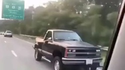 Tài xế lái chiếc xe qua khe hẹp, căn đường thiếu chuẩn xác khiến cánh cửa quệt vào thùng xe tải rơi xuống đất.