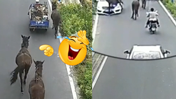 Chiếc ô tô bị hư hỏng nặng vừa chạy vừa gập đầu lên xuống khiến nhiều người xem phì cười.