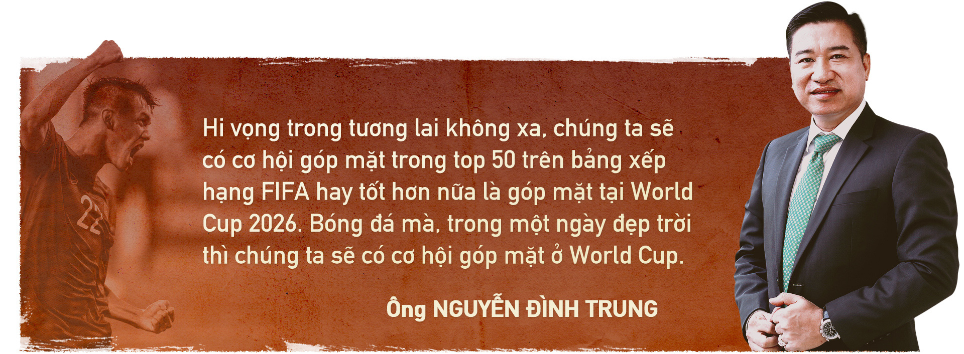 "Những nỗi đau đã không còn âm ỉ như ngày trước, còn kỳ vọng thì mỗi lúc một tăng mà cụ thể nhất chính là World Cup 2026 sắp tới" - ông Nguyễn Đình Trung chủ tịch Tập đoàn Hưng Thịnh, chia sẻ về một phần nguyên do khiến tập đoàn của ông quyết định hỗ trợ chi phí trả lương cho HLV Park Hang Seo và các chuyên gia trong ban huấn luyện.