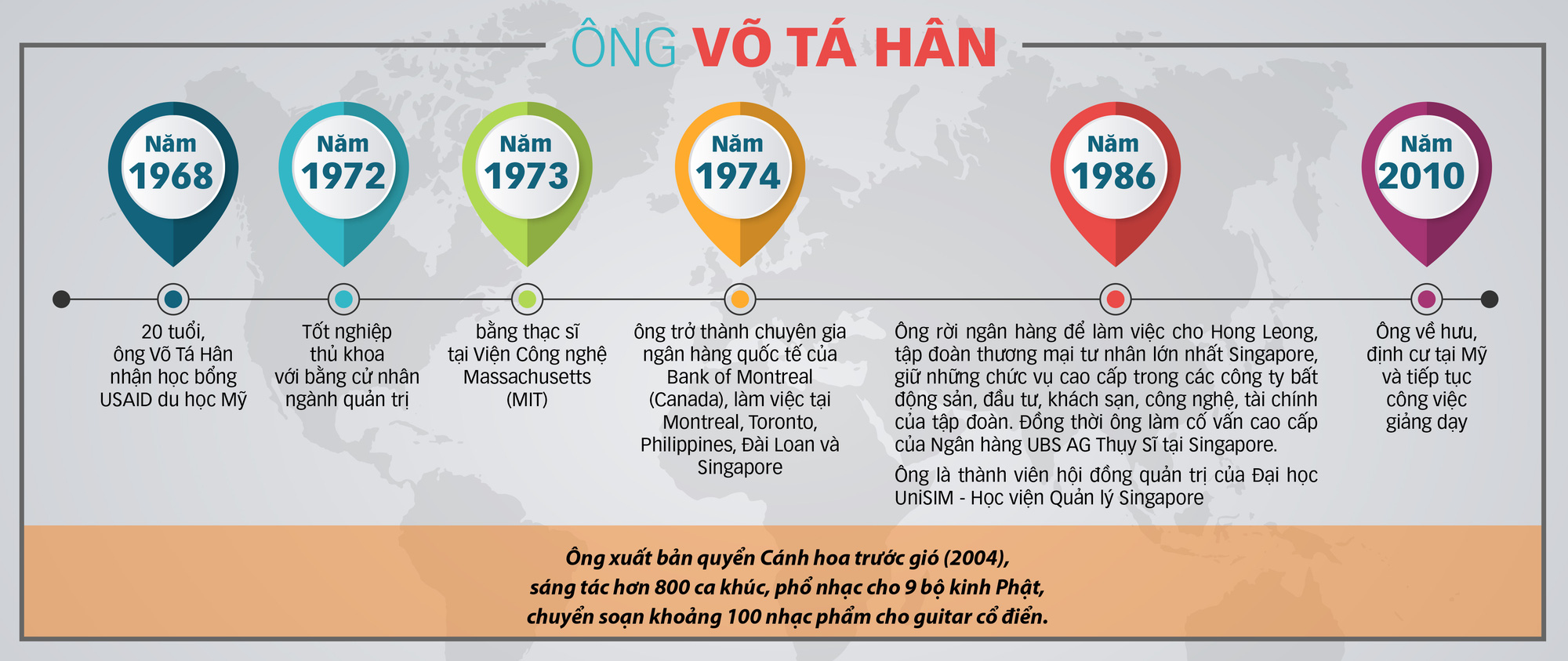 Trong ông là ba con người đều thành tài thành danh: Một ngân hàng gia quốc tế làm việc cho những tập đoàn lớn, người đã lên chương trình tặng sách khổng lồ lên tới trên 1 triệu cuốn cho Việt Nam, và cả nhạc sĩ guitar cổ điển tài hoa với hàng trăm bản nhạc, nhất là những bản nhạc phổ kinh Phật.
