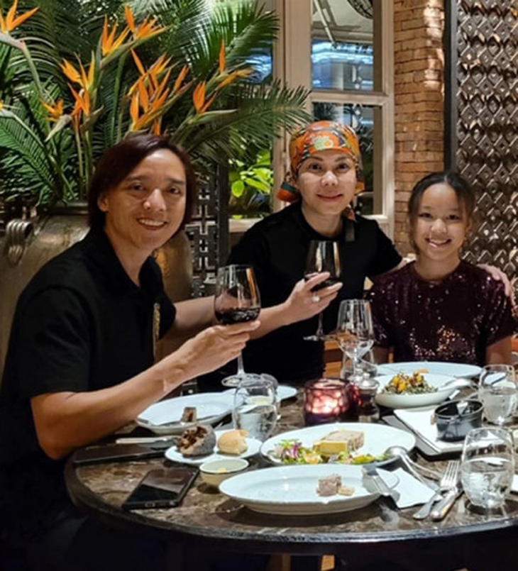 Gia đình Hoài Phương ăn tối cùng nhau.