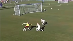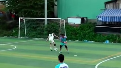 Màn xoạc bóng của đối thủ và pha ghi bàn 'mượn gió bẻ măng' của chàng trai châu Phi khiến nhiều người xem phì cười.