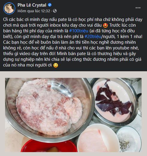 Pha Lê dạy làm pate Hải Phòng giá trăm triệu, hoảng chưa!