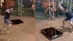 Pha xử lý cầu lông đi vào lòng đất của thanh niên thua trận
