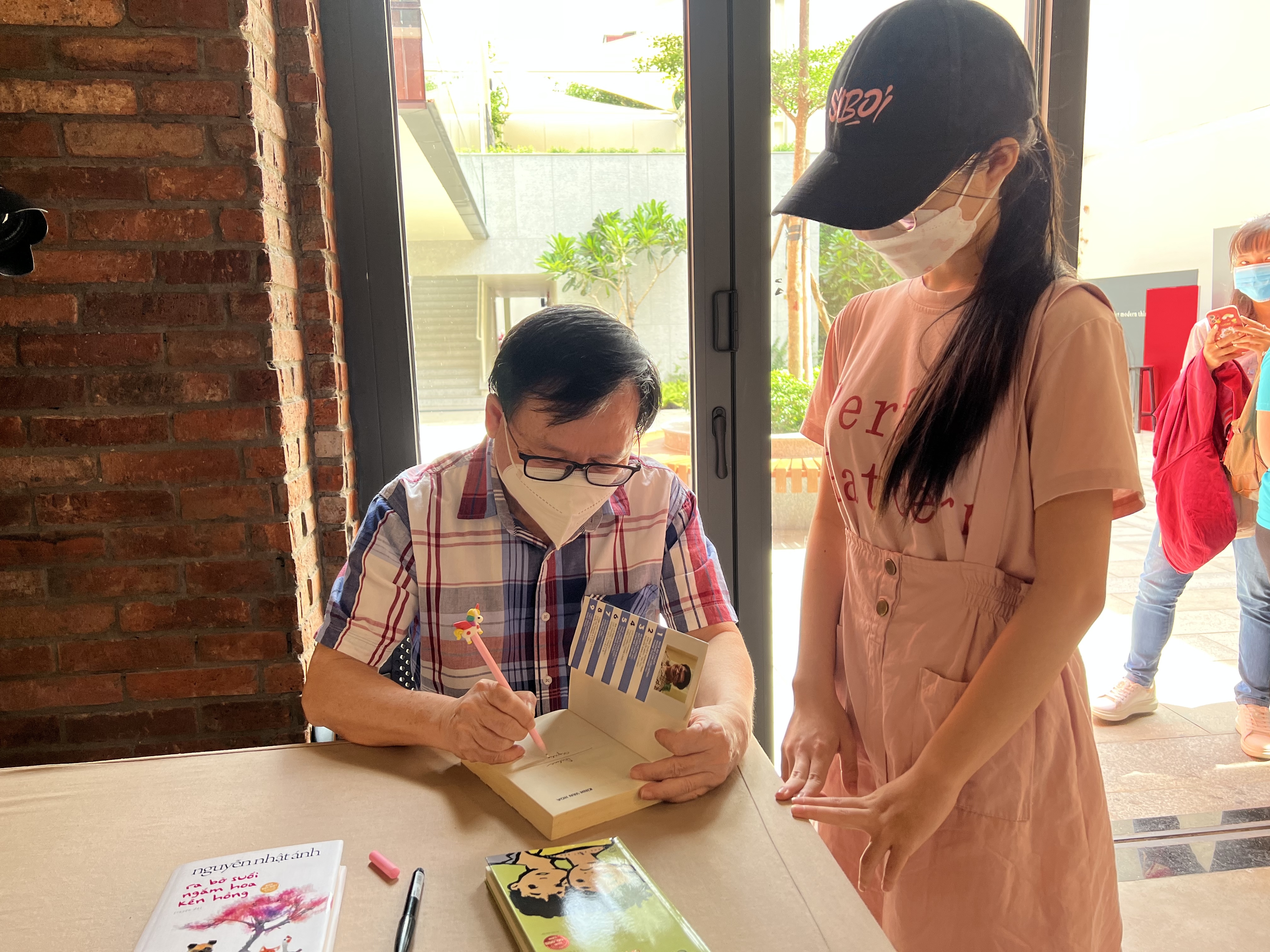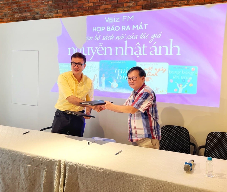 Nhà văn Nguyễn Nhật Ánh ký tặng sách cho độc giả.Vì vậy, trong buổi ra mắt dự án sách nói trên ứng dụng Voiz FM vào ngày 12-2, nhà văn Nguyễn Nhật Ánh cho biết: “Là một tác giả sách, tôi quan tâm nhiều đến vấn đề bản quyền. Nhất là khi sự phát triển của việc nghe sách nói từ mọi người, tôi nhận thấy đây là điều cần thiết để mang đến trải nghiệm mới cho những ai yêu tác phẩm của mình”.