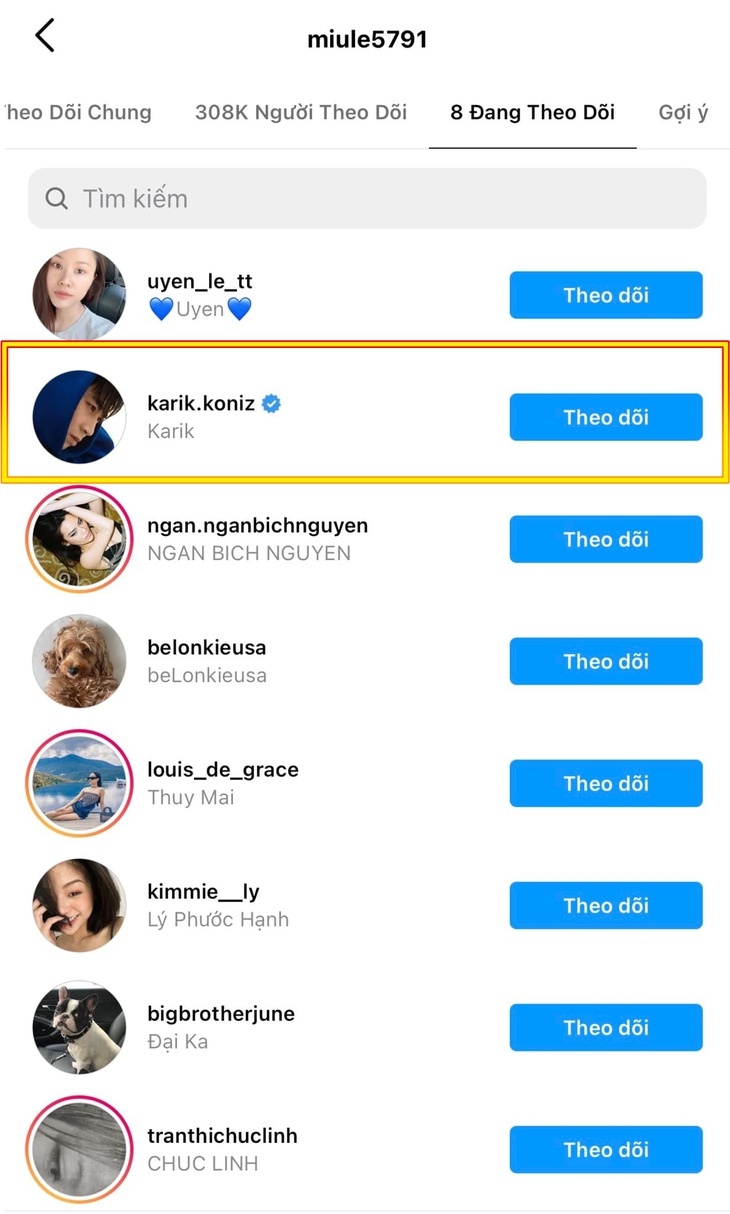 Phát hiện 'sốc': Miu Lê chỉ follow mình Karik