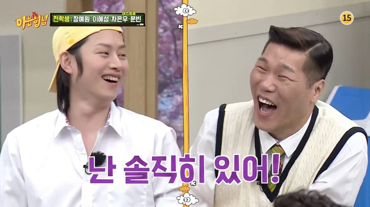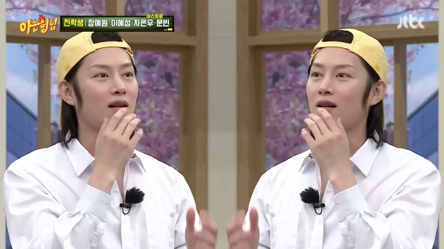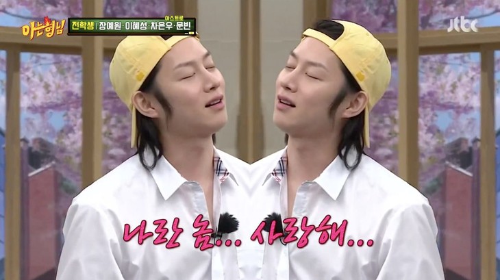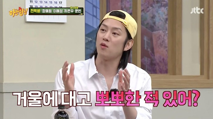 Cụ thể, khi dàn cast không thể giữ bình tĩnh trước visual điển trai của khách mời Cha Eun Woo (ASTRO). MC Kang Dong Ho hỏi thẳng: "Em có bao giờ cảm thấy mình rất đẹp trai không?". Câu hỏi khiến mọi người ồ lên, nghe vậy, Heechul quay sang hỏi khách mời Eun Woo: "Vậy chú em đã từng hôn mình trong gương lần nào chưa?". Câu hỏi quá thành thật khiến thành viên ASTRO ngượng ngùng lắc đầu, Heechul giải thích: "Kiểu như sau khi tắm xong, thấy mình trong gương quá là đẹp á".