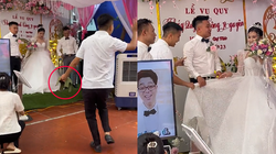 Đại diện hội bạn thân cô dâu lên phát biểu, nhưng cô gái liên tục cười và không nói lên lời khiến cả hội trường đám cưới cũng phì cười theo.