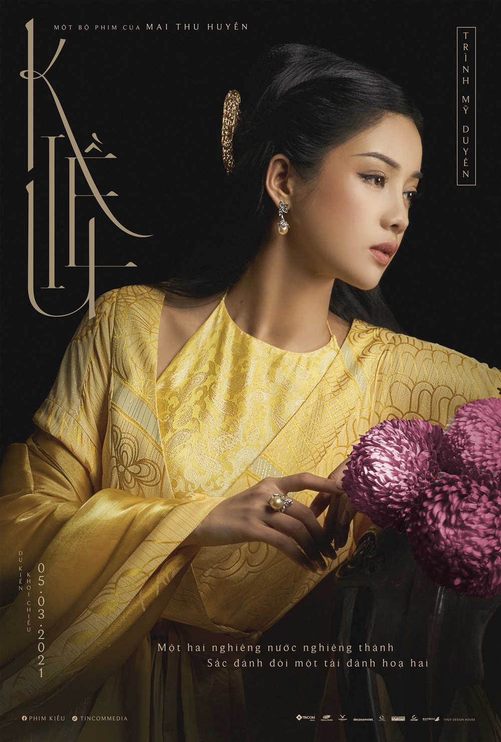 Trình Mỹ Duyên đảm nhiệm ngay vai chính trong phim điện ảnh Kiều. Người đẹp gốc Tuyên Quang sinh năm 1995, sở hữu chiều cao 1m69, có kinh nghiệm tham gia các cuộc thi sắc đẹp và đạt nhiều danh hiệu như: Top 10 Hoa hậu Biển Việt Nam 2016, Miss Áo Dài – Hoa hậu Hoàn vũ Việt Nam 2017, Top 10 The Face Việt Nam 2017.