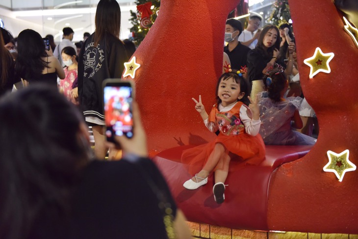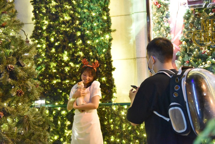 Bên ngoài trung tâm Diamond Plaza, người dân chen kín để chụp ảnh check in. (Ảnh NGỌC PHƯỢNG)Bạn Kỳ Duyên (Q.12, TP.HCM) cho biết thời tiết Sài Gòn se lạnh nên bạn cũng được dịp mặc những chiếc áo dày hơn so với thường ngày - Ảnh: NGỌC PHƯỢNG