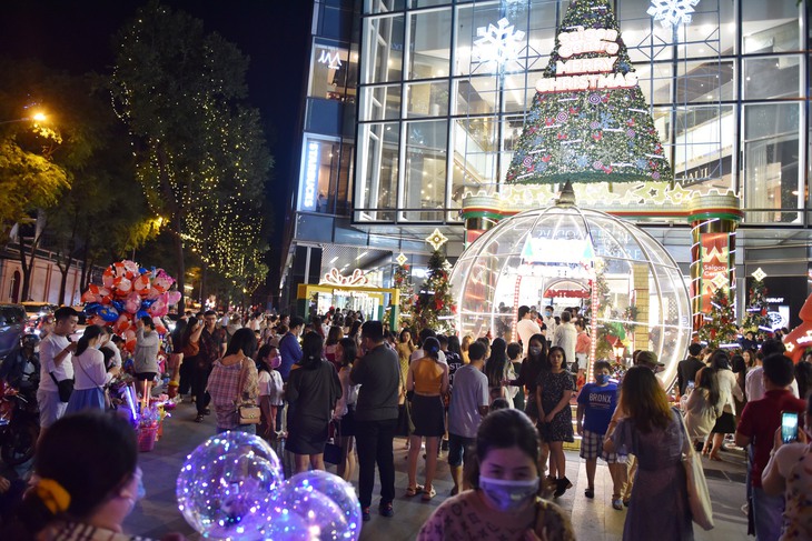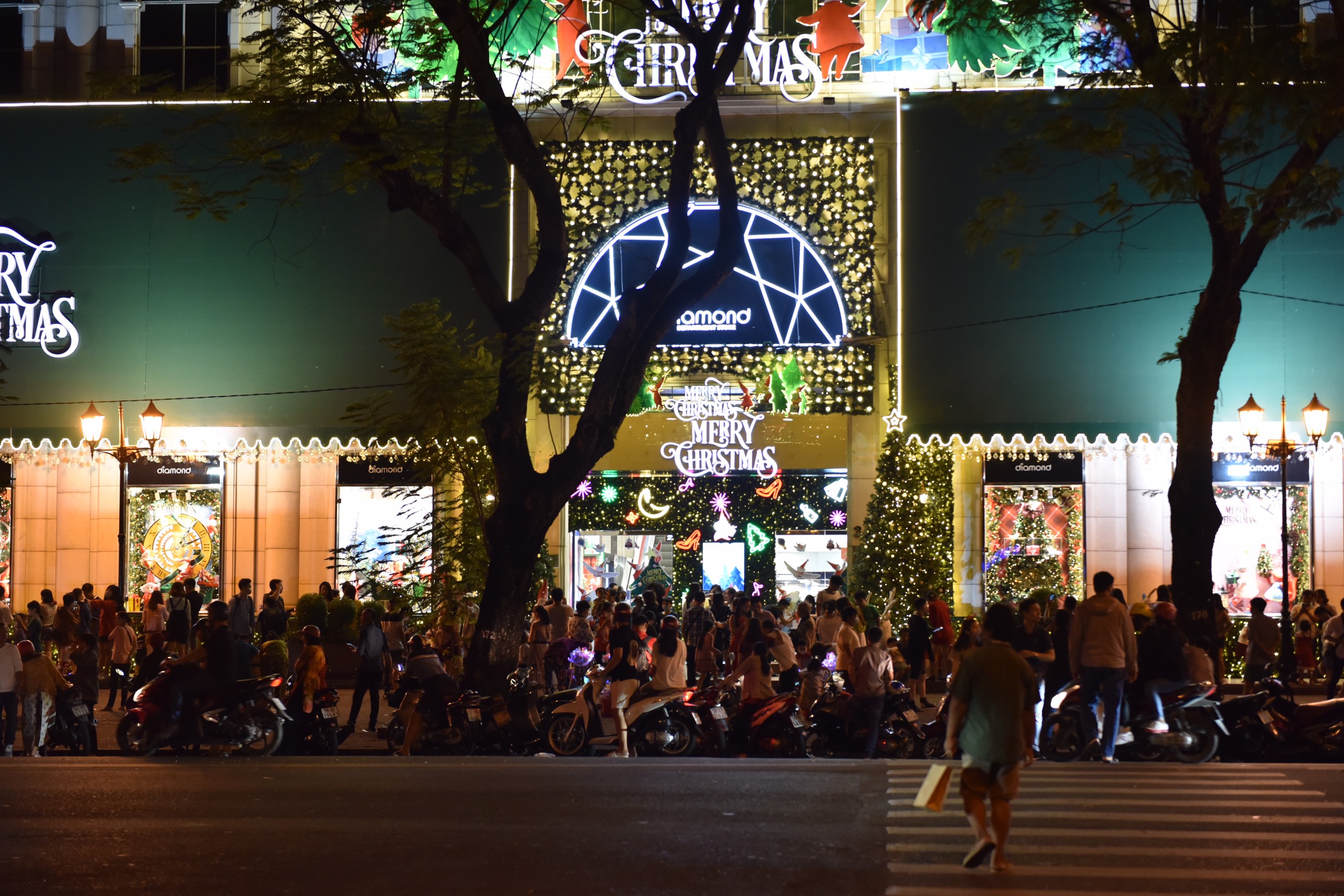 Năm nay, các trung tâm thương mại lớn như Diamond Plaza, Takashimaya... được đánh giá có phần trang trí nổi bật hơn mọi năm, thu hút sự chú ý của nhiều khách tham quan, đổ về check in.