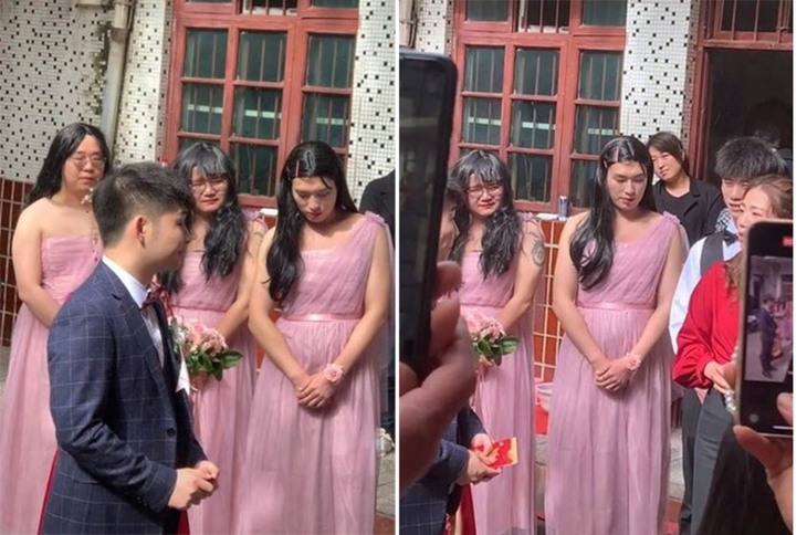 Như một đám cưới vào tháng 12-2021 diễn ra tại tỉnh Hà Nam (Trung Quốc), bộ ba "phù dâu" đều là bạn thân của cô dâu đã khiến khách mời lẫn chú rể không khỏi nhịn cười trước hình ảnh vô cùng hài hước.
