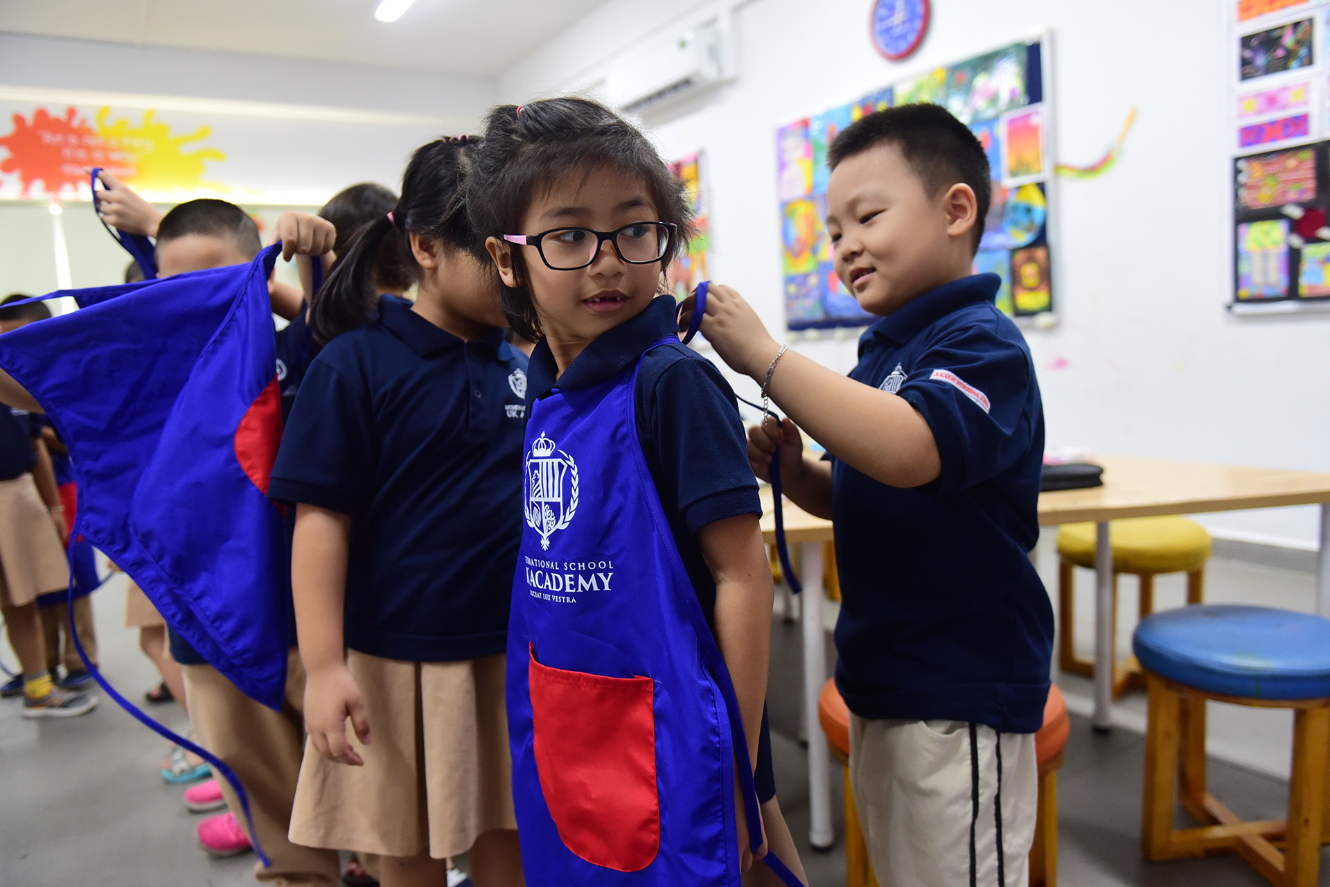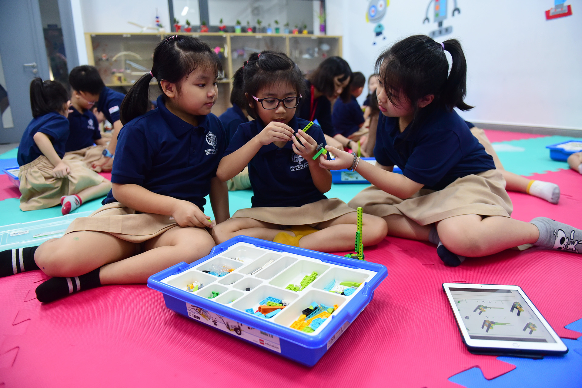Thầy Nguyễn Văn Thanh - Hiệu trưởng Trường UKA Bình Thạnh, cho biết đối với những giờ thuộc về năng khiếu như giờ tiếng Anh, nhạc, họa, thể dục… là các con chủ động đến các phòng học, giáo viên chỉ cần ngồi… chờ các con. Điều này rèn cho học sinh tinh thần chủ động, chuẩn bị bài vở, đồ dùng học tập của mình.