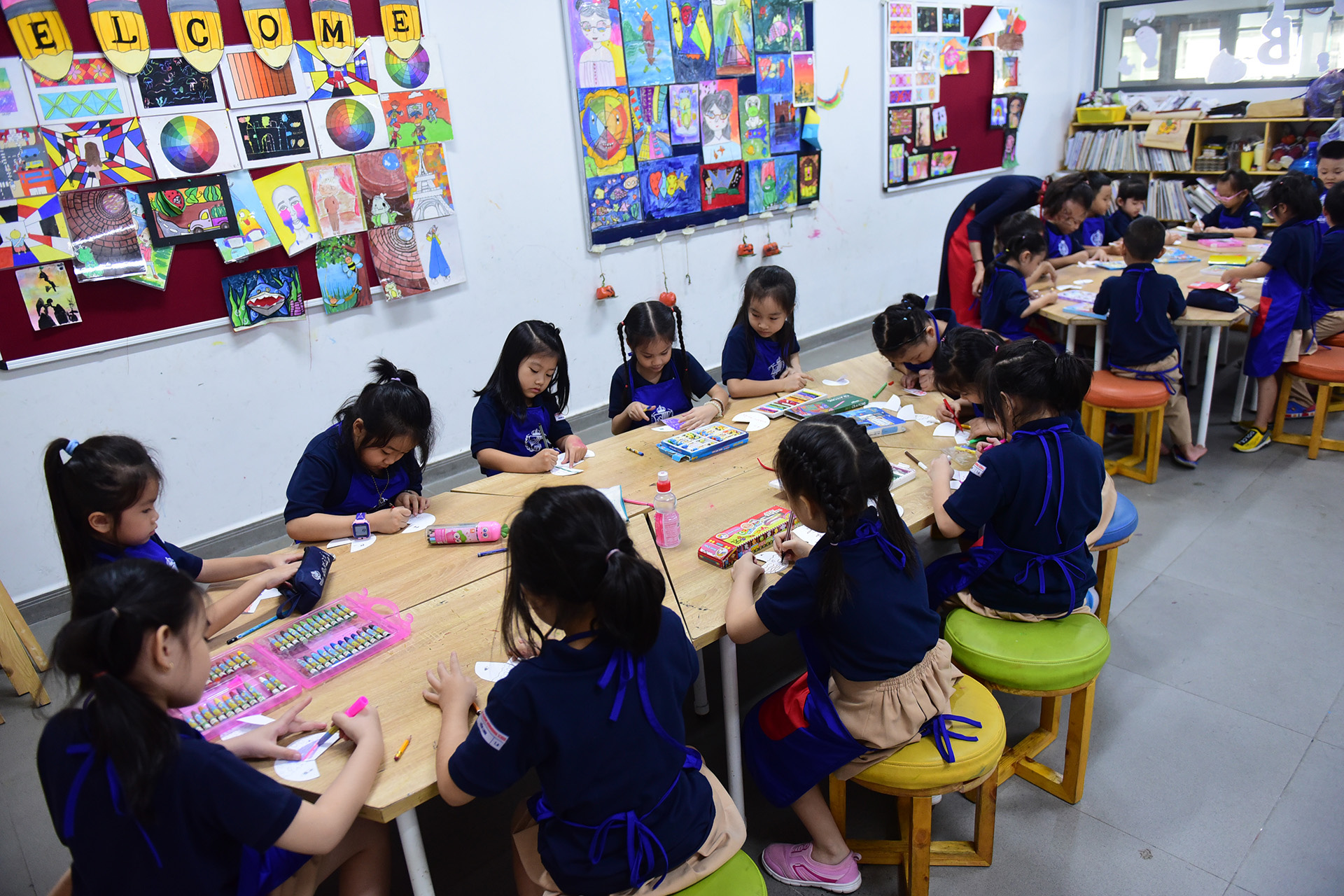 Mỗi khi đến tiết học, các con phải biết chuẩn bị những gì cần mang theo, biết được phòng học và giáo viên dạy mình. Ngoài ra còn giúp rèn luyện tính kỷ luật, tự lập, đúng giờ. Thường thì mỗi giờ học cách nhau 3 phút, các con phải di chuyển đến lớp đúng giờ.