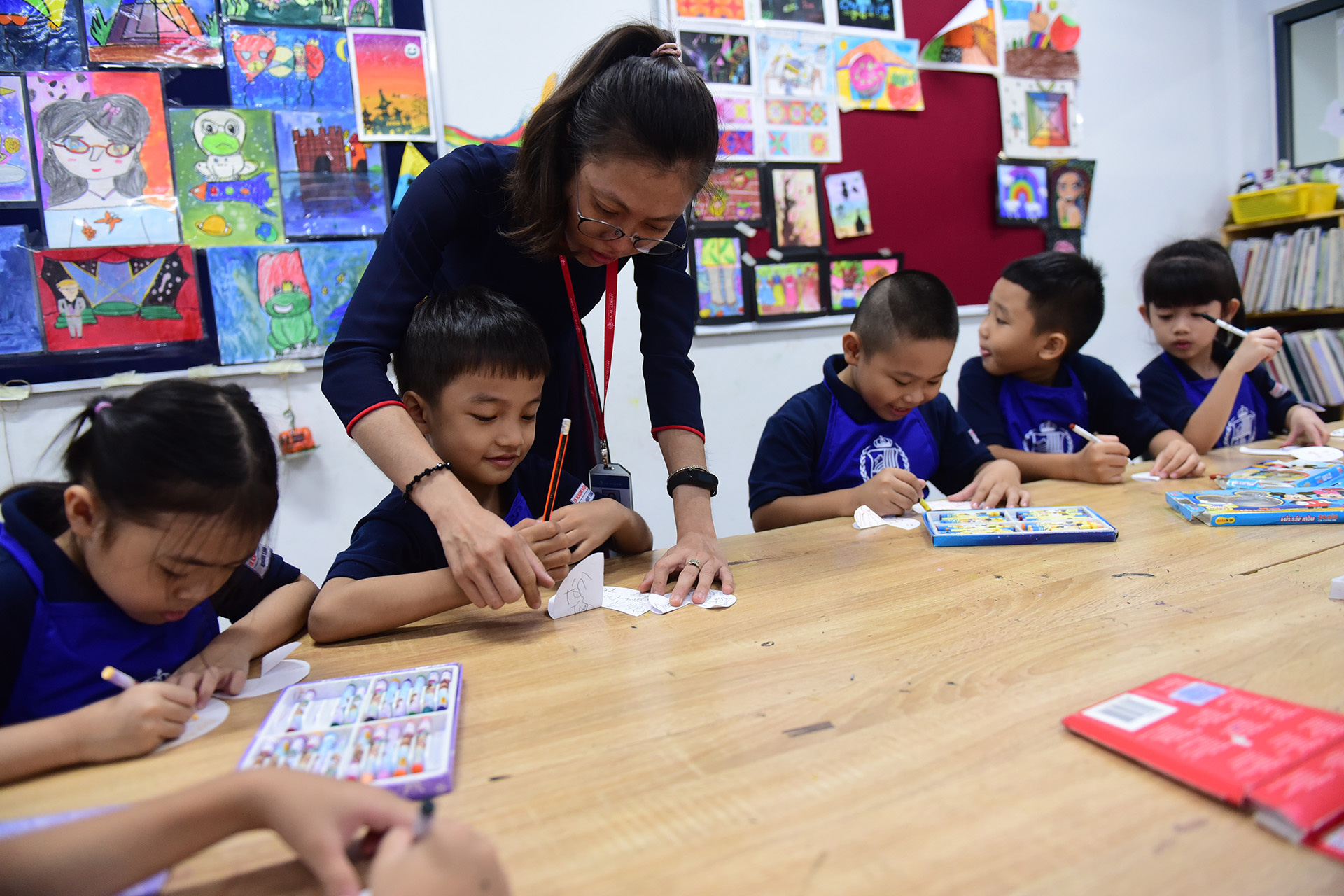 Ngoài ra, các thầy cô luôn cố gắng tìm kiếm, sáng tạo ra những phương pháp, hình thức giảng dạy lôi cuốn, truyền cảm hứng và giúp học trò yêu thích. Có nhiều kiểu khích lệ các con như về nhà các con cùng đọc sách với ba mẹ thì hôm sau các con sẽ được tặng một sticker, những sticker ấy sẽ được quy đổi thành quà.