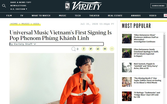 Trong bài viết thông tin sự kiện nữ ca sĩ Phùng Khánh Linh chính thức trở thành nghệ sĩ độc quyền đầu tiên của Universal Music Vietnam và Hãng đĩa Thời Đại hôm 31-7, tờ Variety đã gọi Phùng Khánh Linh là "hiện tượng nhạc Pop Việt Nam (pop phenom) ngay tiêu đề bài viết.