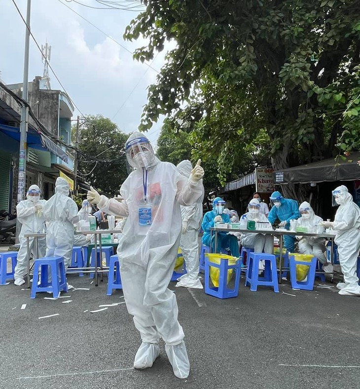 Phương Thanh hỗ trợ y bác sĩ lấy mẫu xét nghiệm Covid-19
