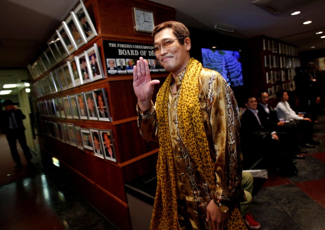 Lối phục sức rườm rà, kỳ lạ luôn gây chú ý của Pikotaro - Ảnh: REUTERSVideo rửa tay ngắn hơn bản hit Pen-Pineapple-Apple-Pen hai phút, vừa được tải lên đã được lan truyền chóng mặt trên mạng.