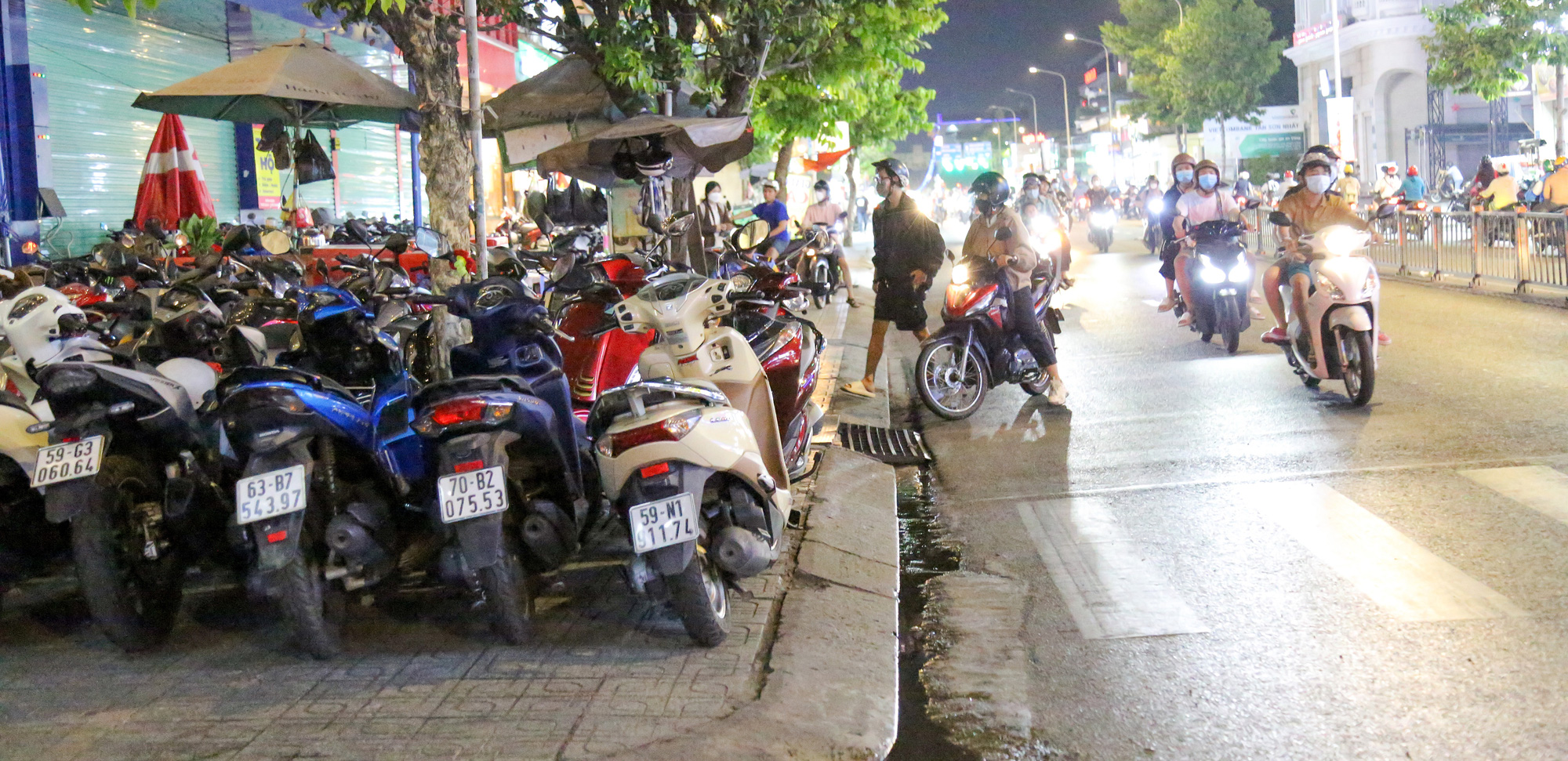 Vỉa hè khu vực xa hơn chút thành mặt bằng buôn bán quần áo, quán nước, quán nhậu. UBND các phường ra quân dẹp trật tự chỉ như "bắt cóc bỏ dĩa", họ vừa quay lưng thì đâu lại vào đó.