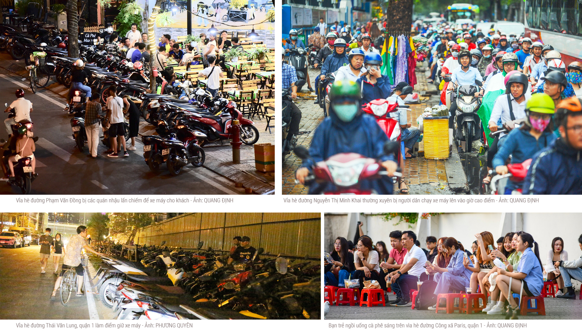 Đi một vòng quanh trung tâm TP.HCM là thấy vỉa hè luôn trong tình trạng mạnh ai nấy chiếm. Vỉa hè các tuyến đường khu trung tâm bị chiếm làm chỗ để xe, để bàn ghế buôn bán, không còn chỗ cho người đi bộ.