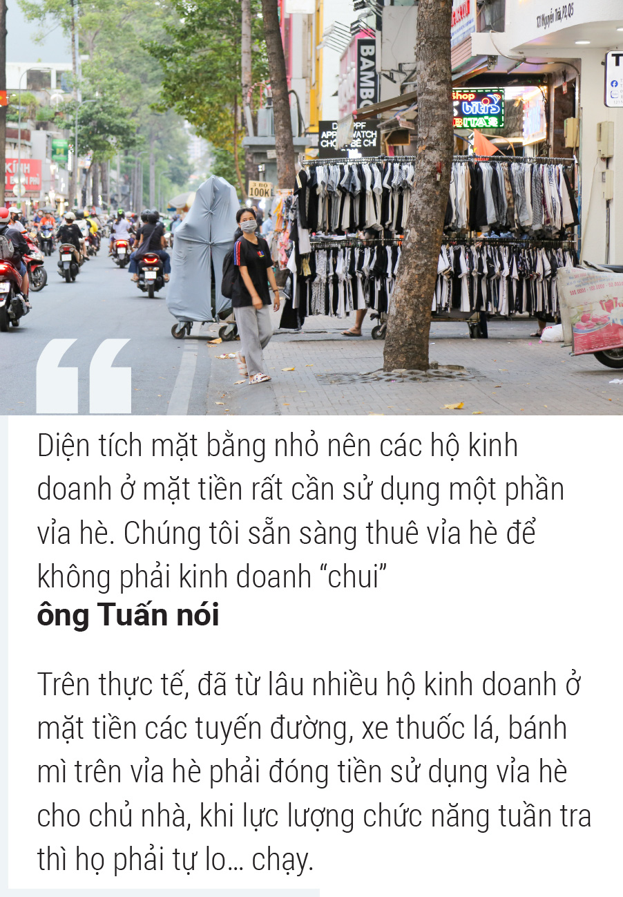 Ông Trần Minh Tuấn, chủ một quán ăn trên đường Phạm Văn Đồng (quận Gò Vấp), cho biết ông sẵn sàng trả phí và mong muốn được sử dụng vỉa hè đàng hoàng.