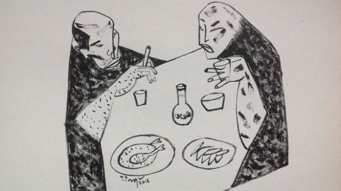TTCT - Quán ngó ra sông. Từ mé sông nhìn lên, xuyên qua mấy bụi lá dừa nước chỉ thấy thấp thoáng vài chiếc ghế nhựa màu đỏ. Không bảng hiệu, không đèn xanh đỏ chớp nháy vào ban đêm. Phóng to Dân đi xuồng ghe nhận ra cái quán nhậu ở miệt vườn này nhờ lúc nào cũng rộn ràng tiếng dao chặt cồm cộp vào thớt, tiếng lanh canh của chén đĩa, xen lẫn trong đó là những tiếng kêu thất thanh của đủ loại chim cò bị nhốt trong chiếc lồng tre lớn để cặp bên hông quán. Phụ trợ quảng bá cho quán ngoài những âm thanh hỗn tạp đó còn có mùi hành ngò, tỏi phi thơm điếc mũi xuôi theo gió từ phía sau mấy bụi lá dừa nước bay ra... Thỉnh thoảng còn thấy dưới con kinh trổ ra từ bên hông quán lờ đờ vài nhúm lông trắng tinh của cò trắng, xanh biếc của trích cồ hoặc lông lấm tấm hạt cườm trên cổ của cu gáy… Như có ma lực lôi kéo, xuồng ghe mau mau tốp máy thả trôi vô họng kinh đó, quăng dây lên bờ là đã có người chụp lấy cột vô rạp xuồng. Khách cứ thong thả rửa mặt rửa tay ở lu nước mưa mát rượi đầu hè. Mồi màng đã bắt đầu rục rịch sau bếp. Chỉ cần nhìn mặt là biết chuyên trị mồi gì. Toàn khách quen cả. Ngày Bảy Hói đặt cọc quyết định mua thẻo đất ở cái hóc bà tó ngay ngã ba sông này, anh em cơ quan ai cũng cười: thằng cha Bảy bị tinh giản biên chế, ôm một cục tiền nên phát khùng, thảy tiền vô đó tính tới đám ma không cho ai biết đường đi phúng điếu; có thằng lúc trước “nghịch kèo” thì buông lững lờ một câu đầy ác ý: anh Bảy kiếm chuyện để xài cho bớt tiền chùa, sợ để lâu nó mục; dân xóm Lá thì hí hửng: chắc là sắp sửa có quy hoạch gì đây nên có người mua trước đón đầu, xóm mình sau lần này cứ mươi bữa nửa tháng bán vài công đất lấy tiền xài chơi... Ai bàn ra tán vào, kể cả vợ con phản đối, Bảy Hói cũng mặc. Mấy mươi năm đi làm việc cơ quan nhà nước, vâng vâng dạ dạ chiều lòn để yên ổn lãnh lương, yên ổn thăng tiến vậy là đủ rồi. Đúng ra là Bảy Hói chưa đến tuổi nghỉ hưu, cũng còn khuya mới lọt vô diện tinh giản biên chế theo quy định, mà ngược lại đang nằm trong diện quy hoạch này cơ cấu nọ nữa là đằng khác. Có đến không dưới bốn cuộc họp để giải quyết lá đơn xin nghỉ với lý do sức khỏe của Bảy Hói, từ chi bộ cơ quan cho đến cấp chủ quản... Biên bản cuộc họp nào cũng dài thậm thượt, tình cảm tràn đầy, níu kéo đồng chí Bảy tiếp tục ở lại cống hiến. Thậm chí cuộc họp cuối cùng, chủ tọa còn “dọa”: nếu đồng chí Bảy vẫn tiếp tục không thay đổi quyết định thì yêu cầu cấp có thẩm quyền xem xét đến tính tiên phong gương mẫu của đảng viên, nếu cần thì áp dụng biện pháp kỷ luật. Rốt cuộc, sau những cuộc họp đó, sau những mềm và cứng đó, Bảy Hói vẫn được toại nguyện. Cầm tờ quyết định trên tay, Bảy Hói cười khẩy: Đời này thằng chen lên thì hằng hà sa số, tự dưng nhảy ra một thằng tự giác rút thì mừng còn hơn bắt được vàng, ở đó còn bày đặt màu mè kiểu cọ. Kèm theo quyết định là một suất chế độ đi Sa Pa ngắm tuyết rơi mấy ngày, say đứ đừ với thắng cố và rượu ngô của đồng bào - thứ mà mấy lần trước khi còn tại chức Bảy Hói có thèm cũng cố nuốt nước bọt xuống bao tử để giữ gìn tác phong lãnh đạo. Ban đầu có ý kiến đề nghị tiệc liên hoan chia tay anh Bảy nên tổ chức trên sân thượng của một nhà hàng khách sạn năm sao. Khách mời ít nhất là từ trưởng phó đầu ngành cấp tỉnh trở lên. Bảy Hói phẩy tay lắc đầu: Rồi xe cộ biển số xanh số đỏ đậu kín mít trên lòng đường, vỉa hè? Bộ mấy ông muốn rủ cánh báo chí hè nhau tới đưa thằng Bảy này lên trang nhất trước khi về hưởng thú điền viên hả? Dẹp hết, địa điểm, khách mời tôi chọn, tiền bạc tôi tự trả! Kết quả là một nhân vật có ít nhiều tiếng tăm trên đường hoạn lộ như anh Bảy Hói đây, trong tiệc chia tay vô cùng giản tiện tại một quán ngoại ô, một mình chạm ly với chính mình, cười khóc một mình. Rồi chợt nhớ đến người tiền nhiệm của mình, trước khi về hưu từng vỗ vai Bảy Hói bảo: Tiệc chia tay của tôi sẽ đãi một món mà cả đời mấy ông cũng chưa từng nếm! Bảy Hói cười hô hố: Thịt người hả anh Năm? Nếm rồi nếm rồi! Món đó thì kể làm gì, món này là món sự thật! Hôm đó, Bảy Hói không đến, nhiều người khác cũng không đến dự vì bận tiệc liên hoan nhậm chức của anh Bảy nên không biết mặt mũi cái món đó ra sao. Bây giờ thì rõ rồi, cái món sự thật này chỉ có thể một mình thưởng thức nó. Mà thôi, đó là quãng đời trước đây, bất chấp nó vẻ vang xôi thịt hay nhọc nhằn xương xẩu thì nó cũng đã vừa trôi tuột qua trước mắt. Còn hiện tại, Bảy Hói chỉ đơn giản là chủ quán nhậu, tận tụy với khách khứa của mình, vậy thôi. Phụ việc bưng bê dọn dẹp là mấy đứa cháu bà con bắn ba tầm đại bác vẫn