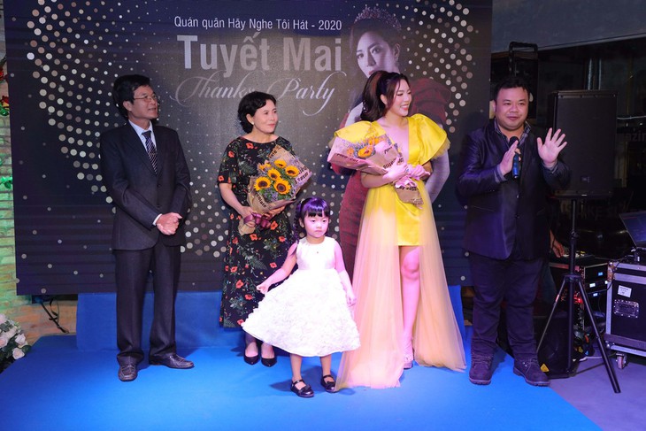 Ca sĩ Tuyết Mai tươi tắn trong buổi tiệc mừng chiến thắng và ra mắt album, MV mới.Tuyết Mai xúc động chia sẻ: “Tôi rất lo lắng vì hôm nay trời mưa rất to nhưng mọi người đã xuất hiện tại đây khiến tôi rất hạnh phúc. Nhìn quần áo mọi người ướt mưa, tôi càng nhận ra mình được yêu thương nhiều đến nhường nào. Tôi thực sự rất cảm ơn vì mọi người có mặt ở đây”.
